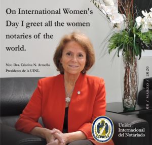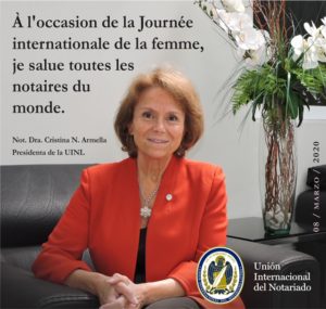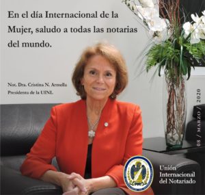 La Presidenta de la UINL, Not. Dra Cristina N. Armella saluda a todas las Notarias del mundo en el Día Internacional de la Mujer.